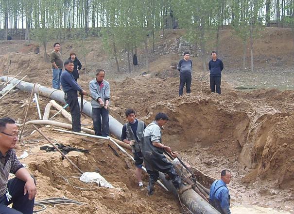 本次供水工程由二十里铺水源地起,跨过泗河与星村镇姜家村处原供水主管网汇合。经过自来水公司前期精心部署,制定了合理的施工方案,先实施泗河南北两侧给水管道铺设,最后进行难度最大的过泗河施工。经过现场充分调研,过泗河工程选择地势平坦、水流较缓的地段实施。首先在河道中筑起一道宽15米的围堰,在围堰中开挖一条低于河床1.5米深的管沟用于供水管道埋设。因是在河道中开挖管沟,刚挖出的管沟就从四周溢满了水,施工人员采取“边挖、边抽、边铺”的方式几米、十几米地向前推进,公司经理王彬现场督导指挥。220米宽的河道,经过技术、施工人员16个昼夜不停奋战,于4月12日施工完毕,并进行了管网冲洗和阀门调试,至此,二十里铺至高峪、星村镇供水工程全线贯通,有力保障了我县东北部乡镇的村村通安全供水。(王新 马彬)