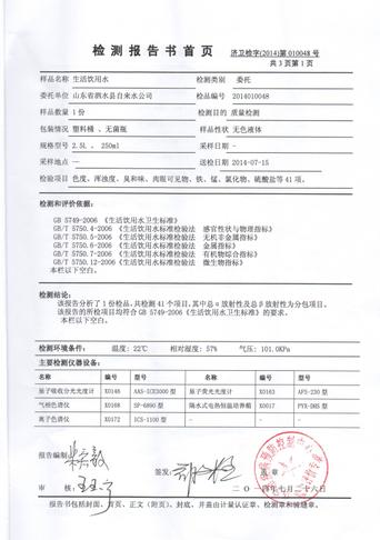 2014年7月份水质检测报告