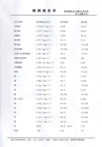 2014年6月份水质检测报告