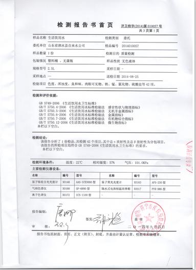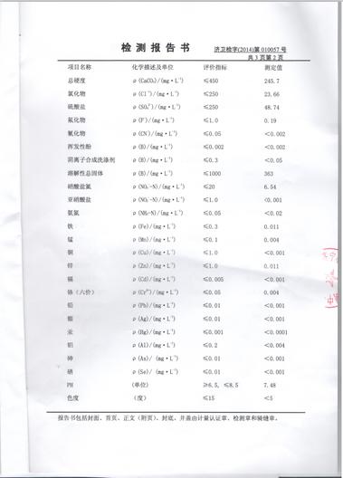 2014年9月份水质检测报告