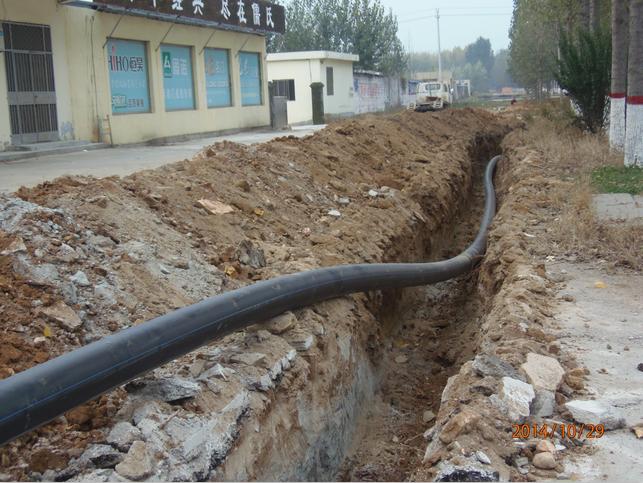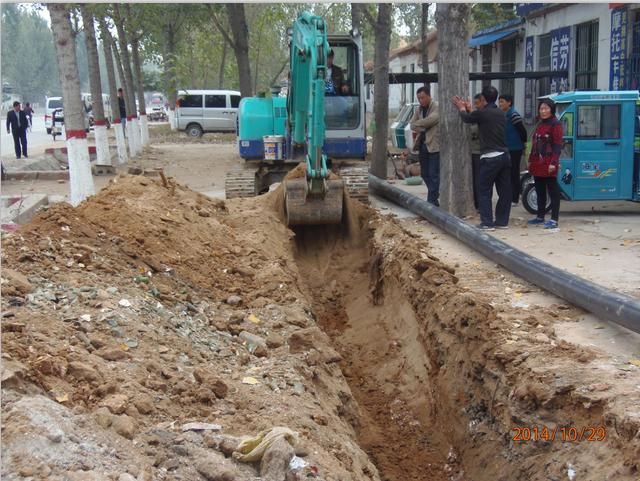 由自来水公司负责施工的苗馆供水工程于10月27日正式开工建设,该工程是由327国道收费站至苗馆邵家村,全长690米,采用φ200PE管材。