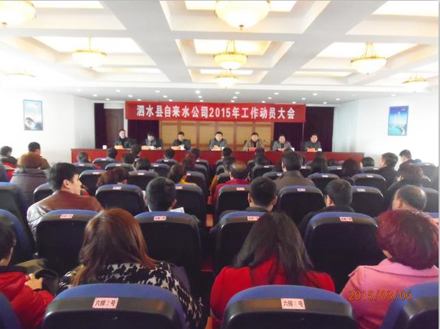 3月6日,县自来水公司全体干部职工参加召开了2015年工作动员大会,同时结合泗水县作风建设集中整治月活动领导小组与县住建局党委提出的深入开展“作风建设集中整治月”活动,公司全体人员进行集中学习。会议由公司副经理徐艳坤同志主持,会上,公司班子成员分别对2014年度各自负责的工作进行总结,并提出了2015年的工作计划。公司经理、党总支书记王彬与个别科室负责人代表签订了2015年度工作目标责任书,目的在于任务分解,层层管理,层层落实。工作目标责任书的签订形成了“人人有压力、人人有责任”的工作氛围,为全面完成2015年目标任务奠定了基础。同时,王彬同志对自来水公司2015年的总体工作进行了部署并作动员讲话:要求大家要尽快调整状态投入到工作中来,各科室应认真安排年度工作,制定工作计划。根据公司制定的目标责任状,做好自己的本职工作,争取2015年的工作再有新的突破。