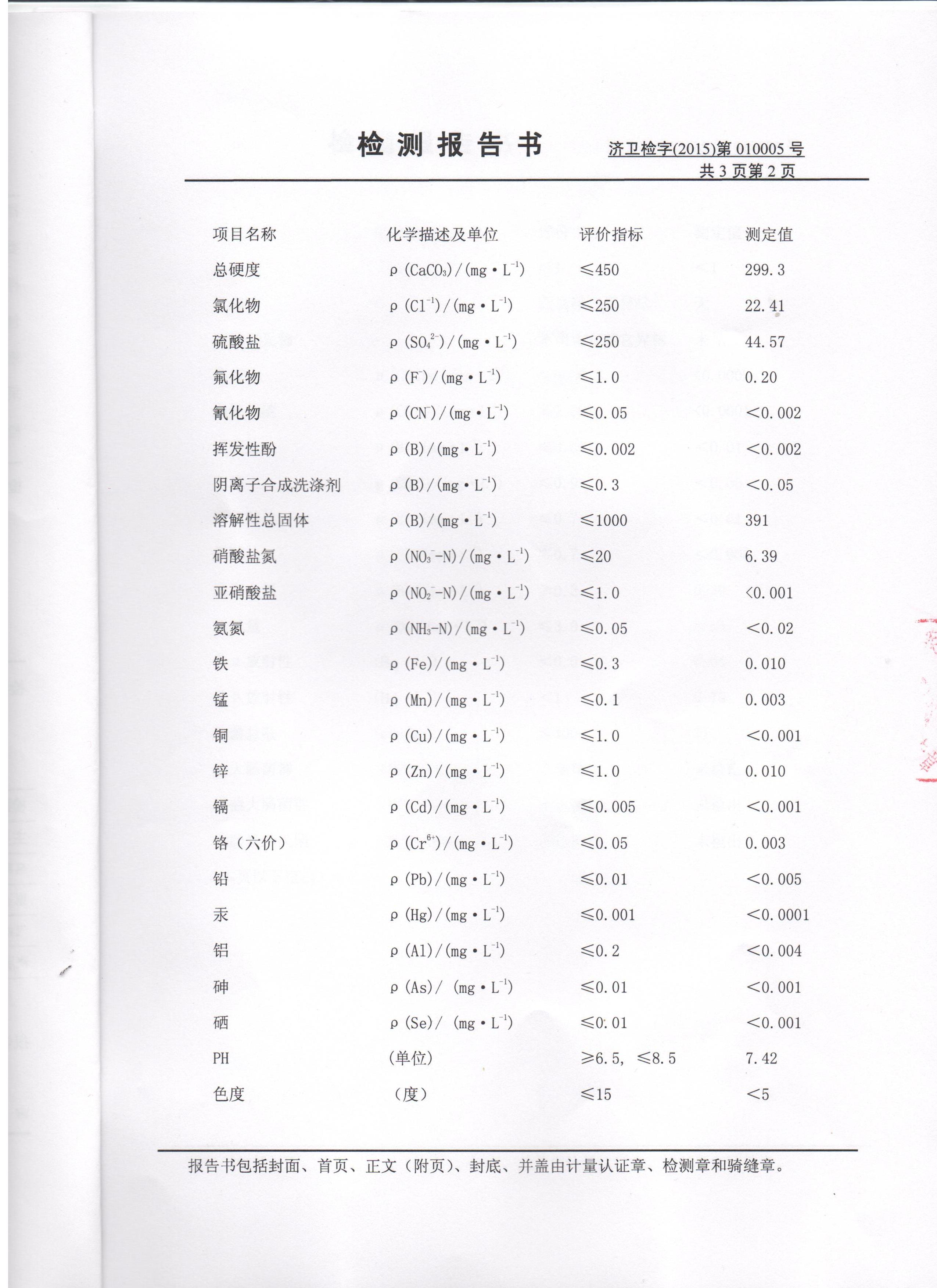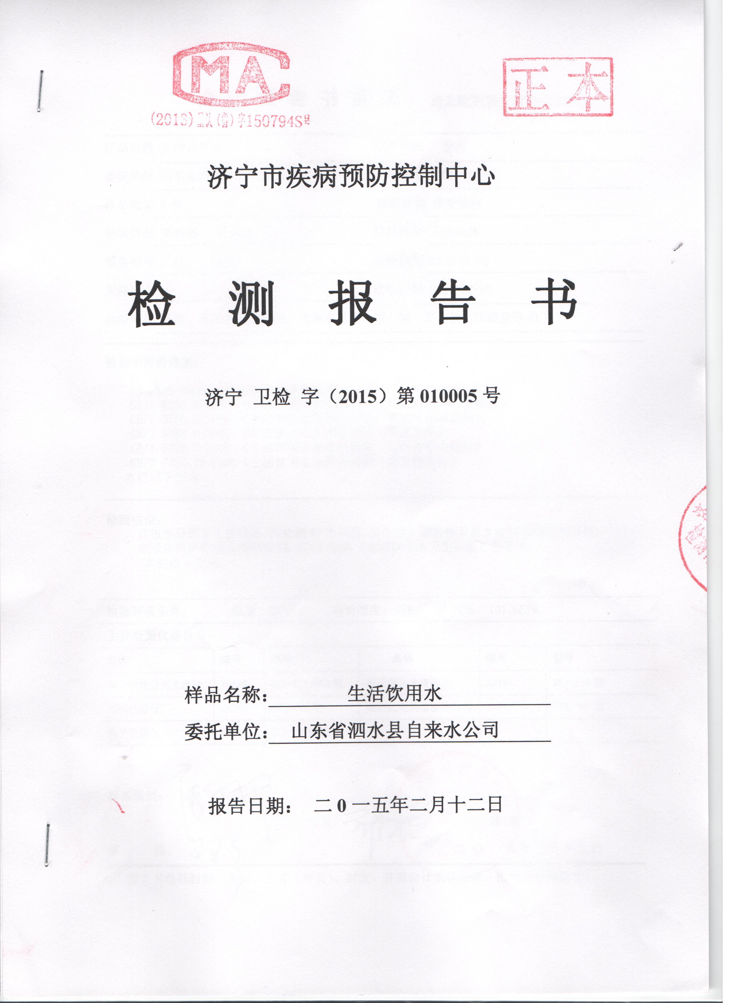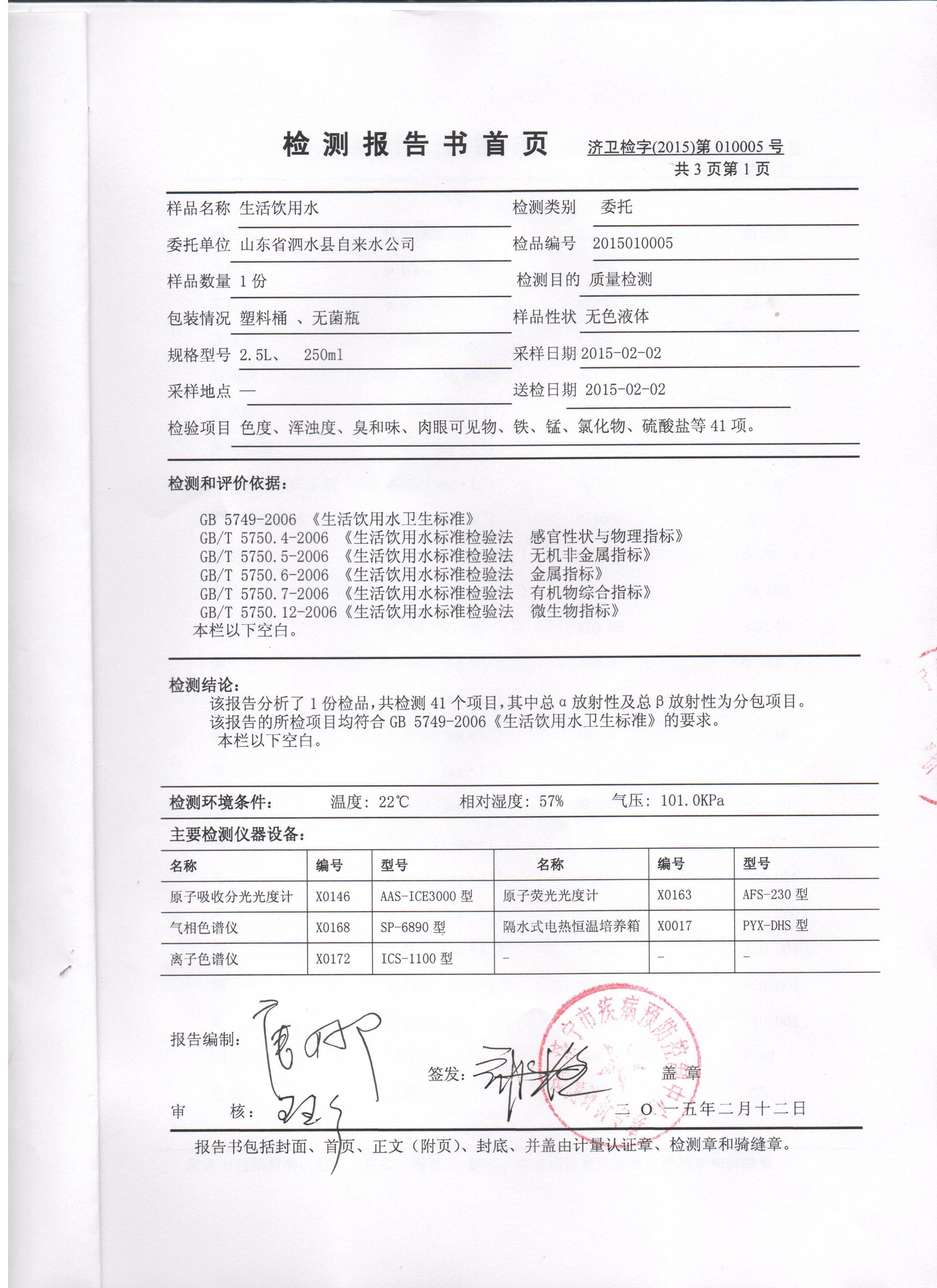 2015年2月份水质检测报告