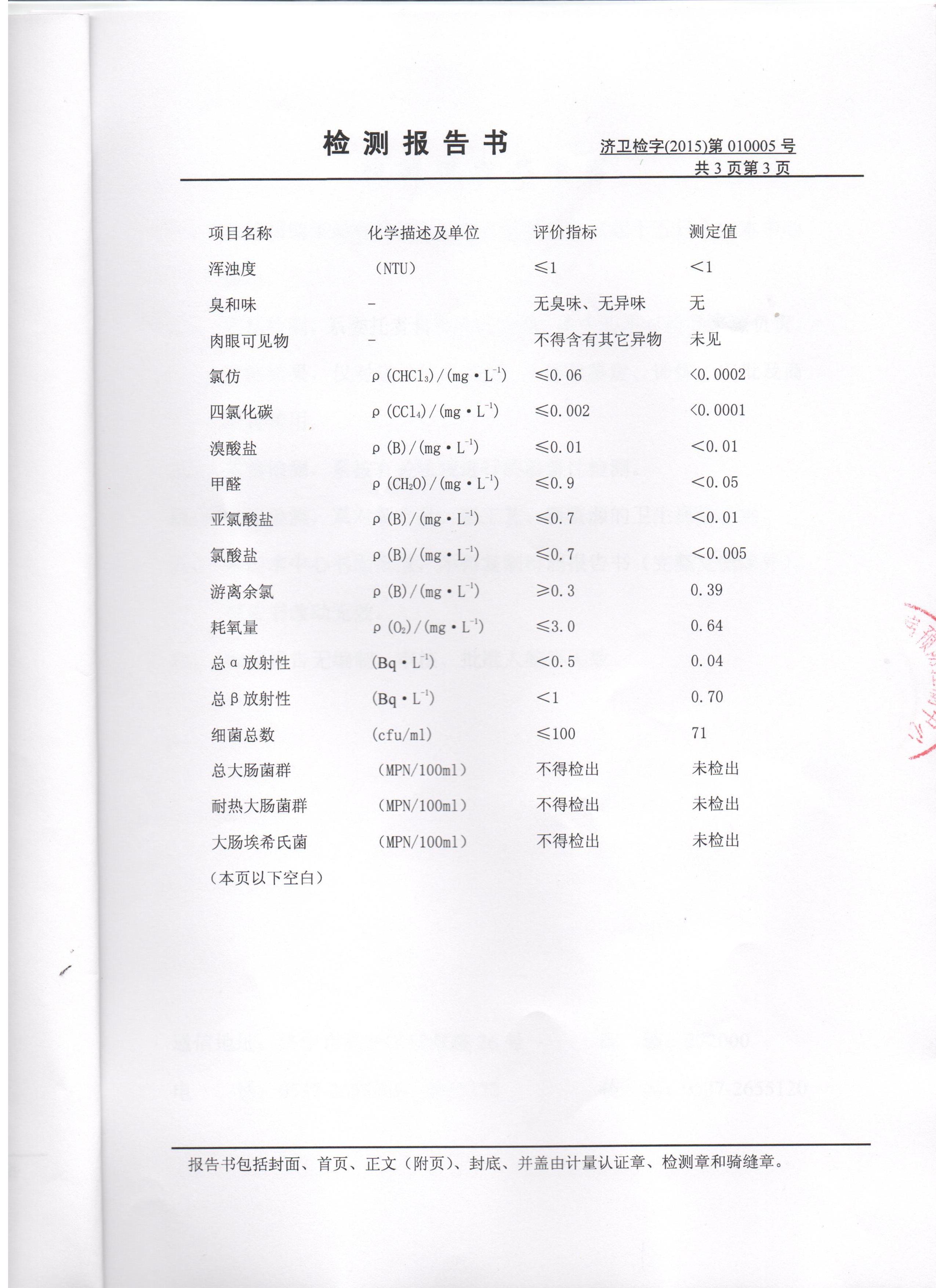 2015年3月份水质检测报告