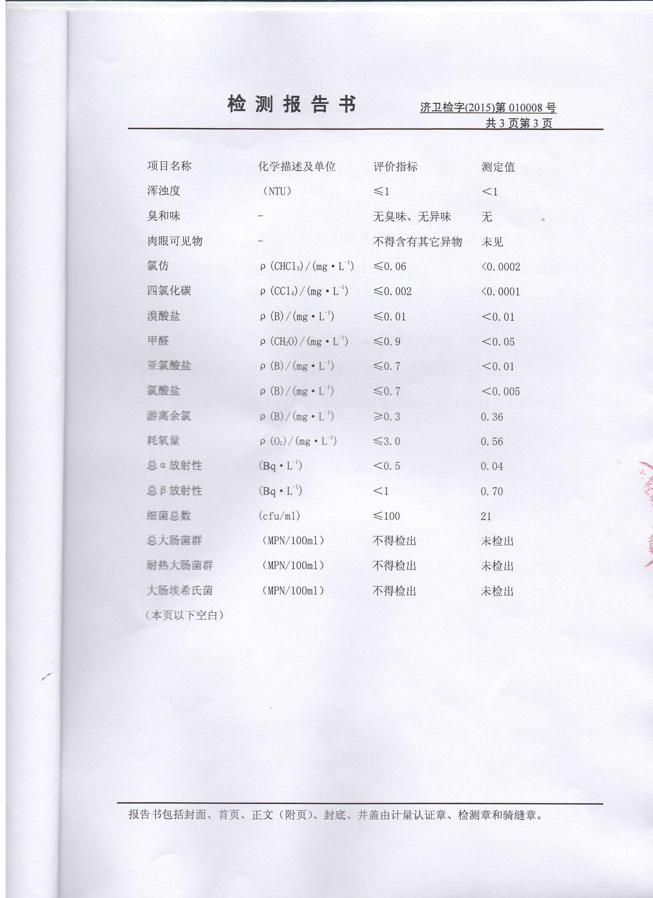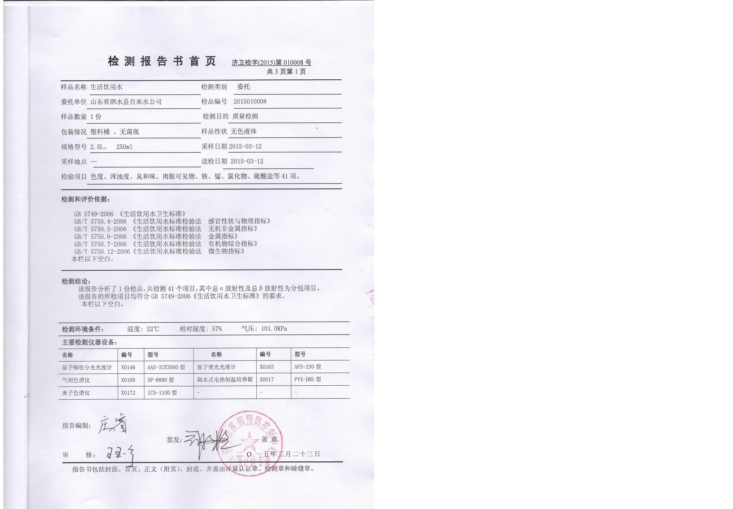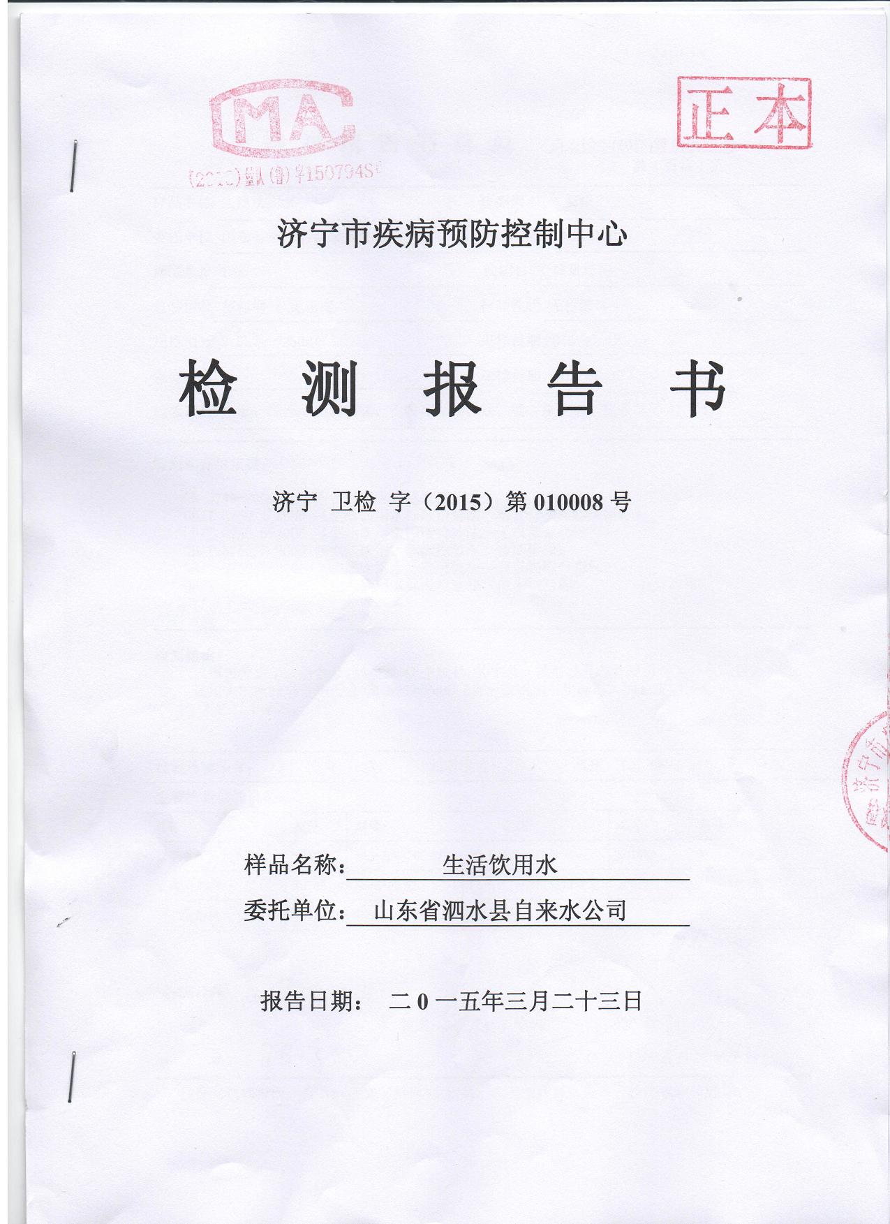 2015年3月份水质检测报告