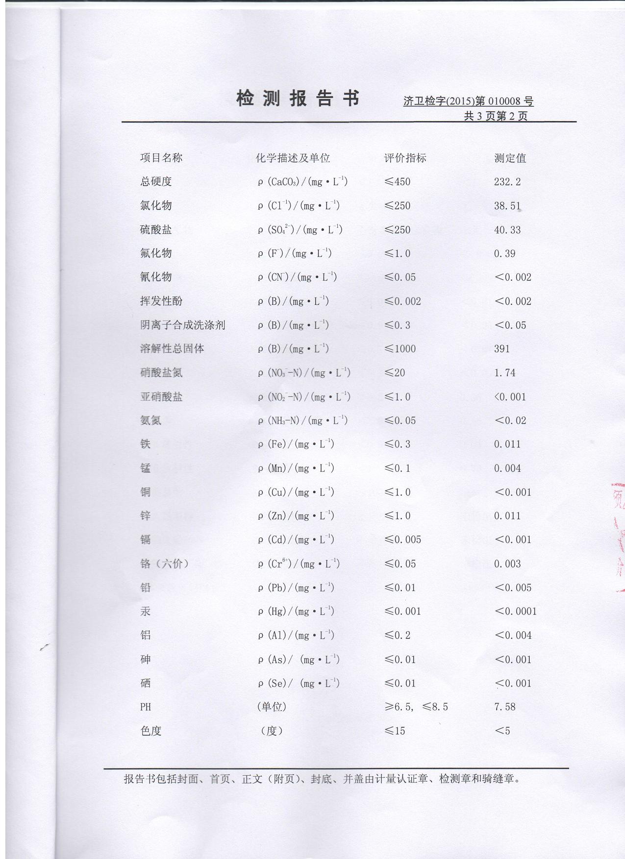 2015年2月份水质检测报告