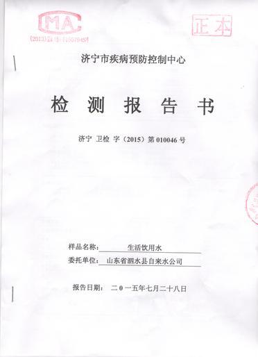 2015年6月份水质检测报告
