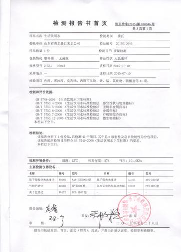 2015年7月份水质检测报告