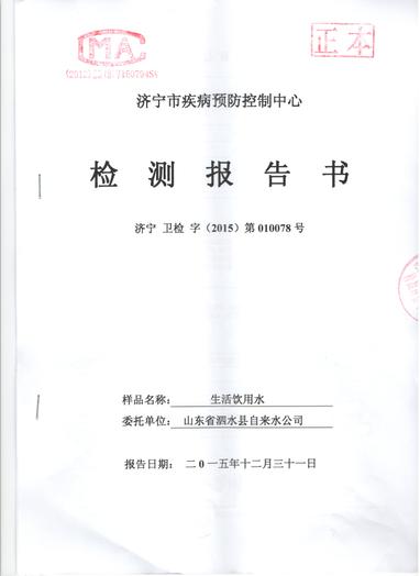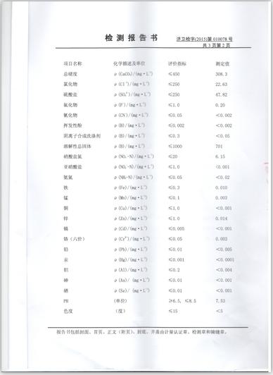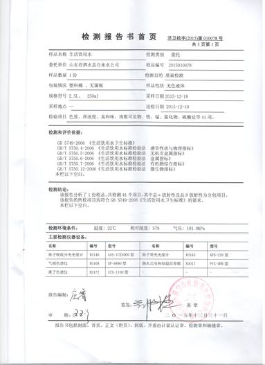 2015年12月份水质检测报告