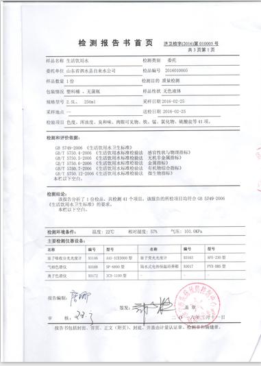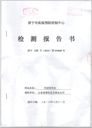 2016年3月份水质检测报告
