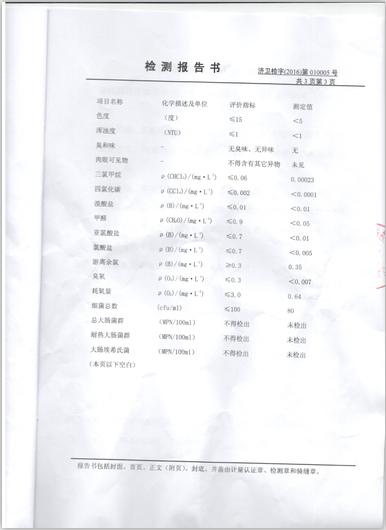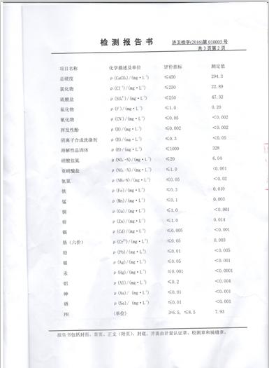 2016年1月份水质检测报告