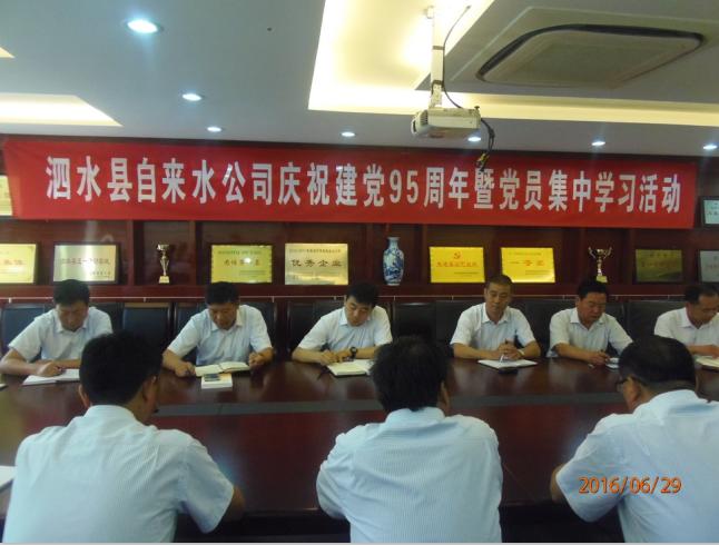 6月29日上午,按照住建局党委安排部署,县自来水公司开展“庆祝建党95周年暨“两学一做”党员集中学习教育”工作,公司全体在职党员参加,会议由公司党总支书记、经理王彬主持并讲话。