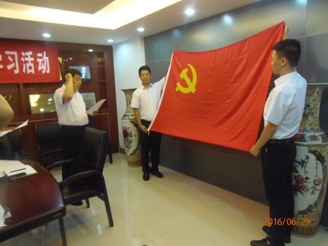 首先王彬同志带领大家重温入党誓词;由公司党总支副书记苏东带领共同学习了习近平总书记“打铁还要自身硬、关于全面从严治党”与“充分发挥我国社会主义政治制度优越性”两个方面的系列重要讲话;由公司副经理徐艳坤带领大家学习《中国共产党章程》。
