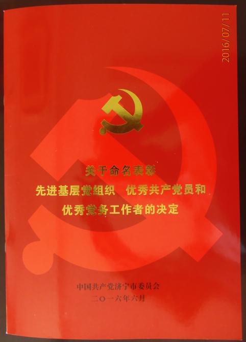 今年6月份,泗水县自来水公司党总支部被济宁市委授予济宁市“先进基层党组织”荣誉称号。这项殊荣是市委对公司党总支部各项工作的充分肯定。