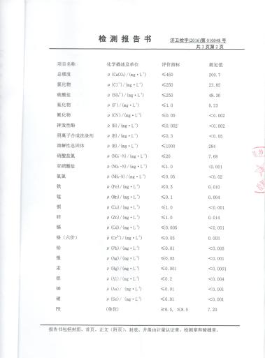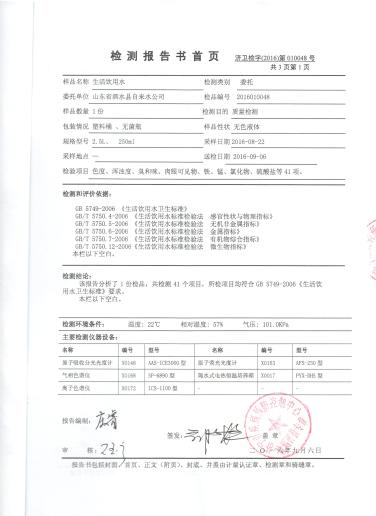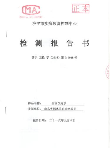 2016年9月份水质检测报告