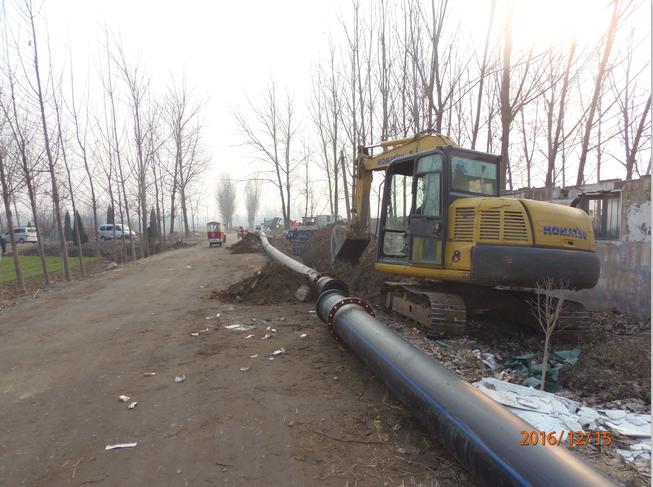 自12月5日开始,公司进足施工材料,安排施工技术人员,保证工程建设顺利的进行。该段供水管网的铺设规划建设为泗北新城输水的主动脉,起点苗馆水源地至新城水厂,工程全长7.1km。从节能、环保、安全的理念出发,工程全线采用新型钢丝骨架塑料复合管,此管材是在我县供水管网建设中首次使用。