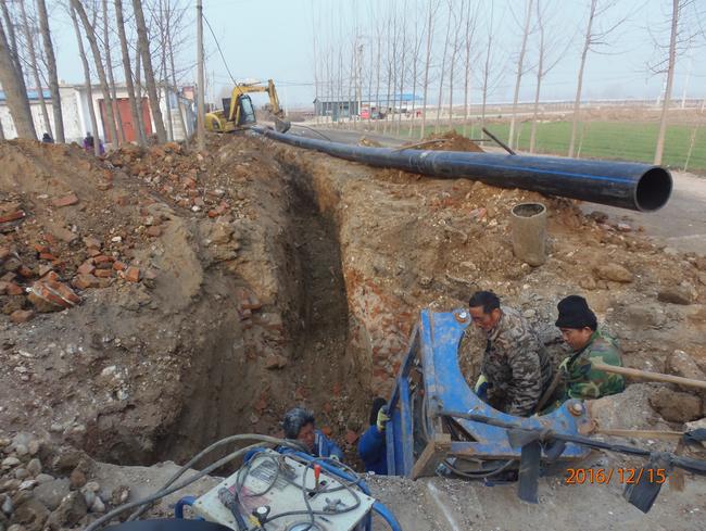 为使工程尽早完成,自来水公司施工人员克服天气严寒,加班加点的战斗在施工现场。顾不上脏和累,顾不上喝一口水,施工人员在技术人员的指导下,利用起重机械小心地把钢丝骨架塑料复合管吊入沟槽中,用冻红的手指精准地进行管道对接,以保证工程施工质量。公司领导多次到工地指导施工,解决技术难题。经过大家的共同努力,目前已铺设供水管道2.3km,争取高质量、高要求的完成道供水管道铺设任务,为我县经济的飞速发展、泗北新城的快速建设,做出积极的贡献。(董家强)