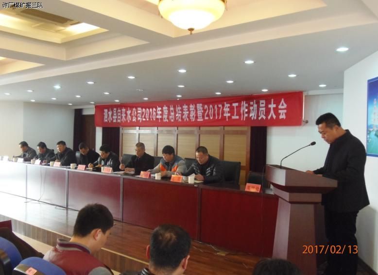 为动员全体干部职工尽快走出节日气氛,全力以赴做好今年的工作。 2月13日,传统的元宵佳节刚过,自来水公司召开了2016年度总结表彰暨2017年工作动员大会,公司全体干部职工参加,住建局副局长张伟同志出席会议。