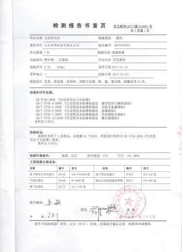2017年1月份水质检测报告