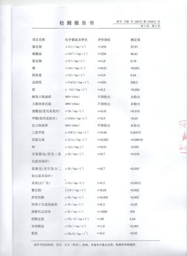 2017年2月份水质检测报告