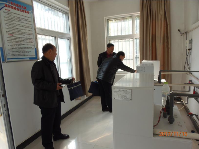 检查组首先听取了我公司此次参加“五好设备”评选工作的开展情况汇报,汇报结束,先后对2万吨水厂的加氯消毒设备及鲍东庄水源地的泵房、变压器进行了全面现场检查和资料查阅。检查过程中,专家组对我公司的设施设备的管理运行给予了高度评价,同时也提出了存在的不足。