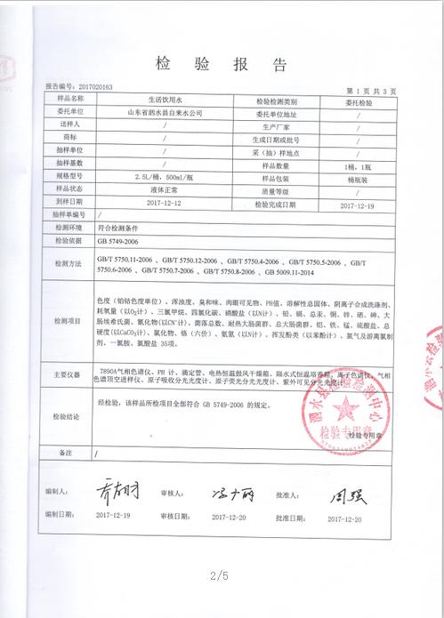 2017年12月水质检测报告