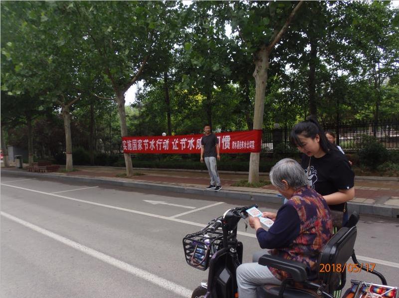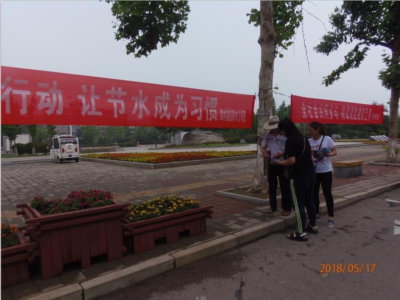 5月17日,自来水公司在县科技文化广场上,悬挂宣传横幅,接受群众咨询,向群众介绍了我国水资源的状况,日常生活用水的循环高效利用,生活中的节水小窍门,常见水质现象原因及处理等方面知识以及相关供水设施的维护和管理知识,倡导群众更换节水器具,号召广大用户积极参与节水行动,培养科学、文明、节约的用水习惯,努力形成人人关心节水、时时注意节水的好风尚,共同建设一个生态、活力、幸福的新泗水。