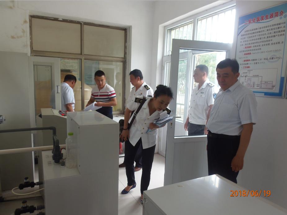 检查中,刘梅馨科长重点对县自来水公司的卫生管理落实情况、水质消毒设施、水厂清水池、水质化验室等进行详细了解,现场查看沉淀、消毒、化验等环节的设备运转及档案管理情况;卫生监督员现场对出厂水的二氧化氯消毒指标进行检测,检测结果符合国家《生活饮用水卫生标准》(GB5749-2006)。刘梅馨科长对我公司近年来生活饮用水卫生管理工作给予了充分肯定,同时也提出要严格落实各项卫生管理制度,做好各环节安全生产工作,确保我县饮用水水质安全等更高的要求。