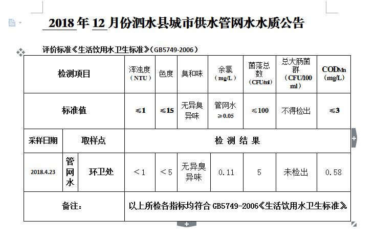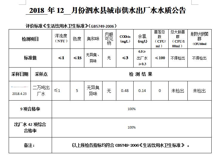 2018年12月份水质检测报告