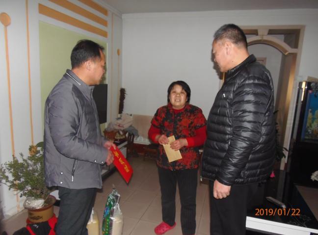 在2019年春节即将来临之际,为做好关心、关爱退休职工的生活,1月22日,县自来水公司党总支副书记苏东、工会主席孔明及办公室人员对部分退休职工进行了走访慰问,代表公司向他们送去新春的祝福与问候,同时送去了慰问品表示节日的关怀。