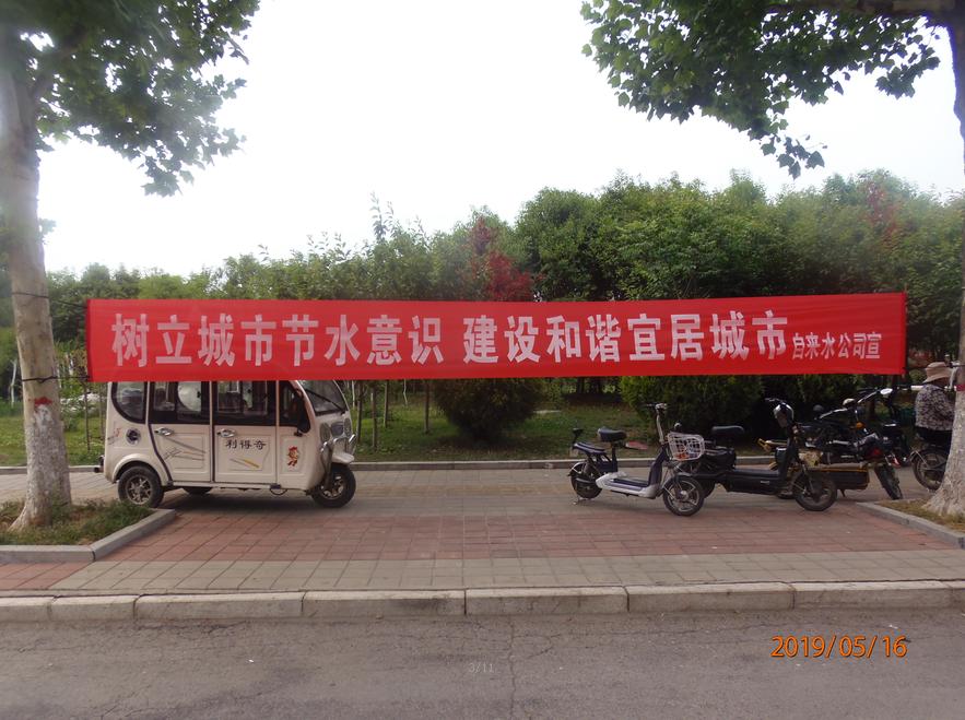 5月11日至17日,自来水公司在县科技文化广场上,悬挂宣传横幅,接受群众咨询,向群众介绍了我国水资源的状况,日常生活用水的循环高效利用,生活中的节水小窍门,常见水质现象原因及处理等方面知识以及相关供水设施的维护和管理知识,倡导群众更换节水器具,号召广大用户积极参与节水行动,培养科学、文明、节约的用水习惯,向群众讲解节水知识,传递节水理念,努力形成人人关心节水、时时注意节水的好风尚,共同建设一个生态、活力、幸福的新泗水。