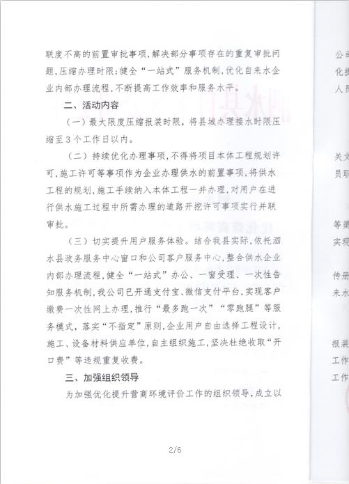 自来水公司营商环境实施方案