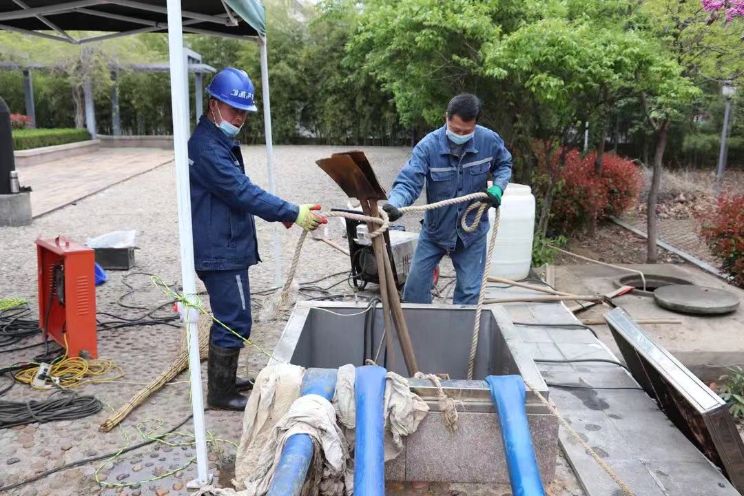 作业前,工作人员制订了全面的清洗方案,备齐清洗专用设备及工具,搭设临时照明线路、水泵启动控制线路及3台排水泵,开启两座清水池4处检修口及通气孔向池内换气。