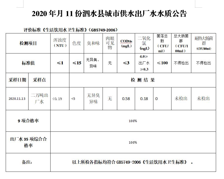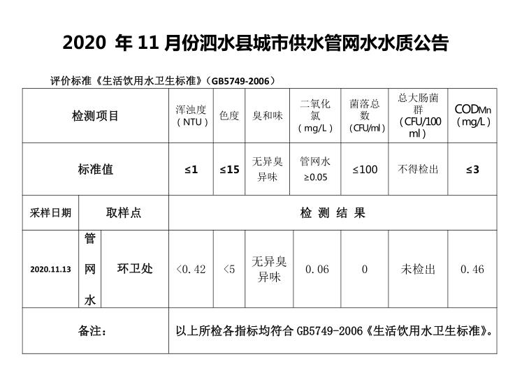 2020年11月份水质检测报告
