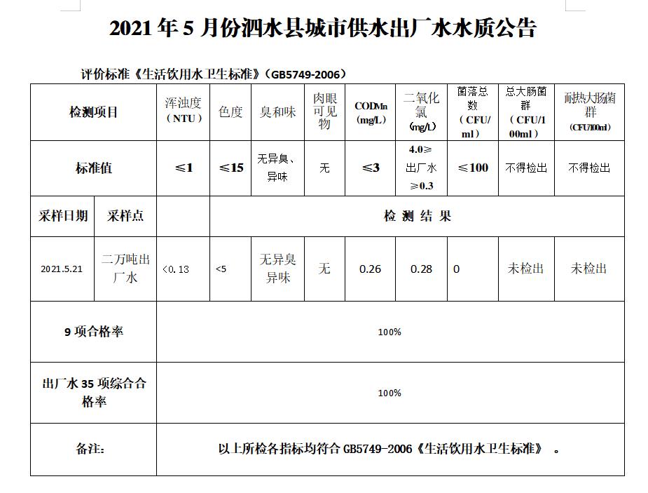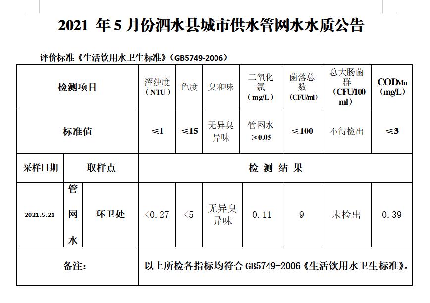 2021年5月份水质检测报告