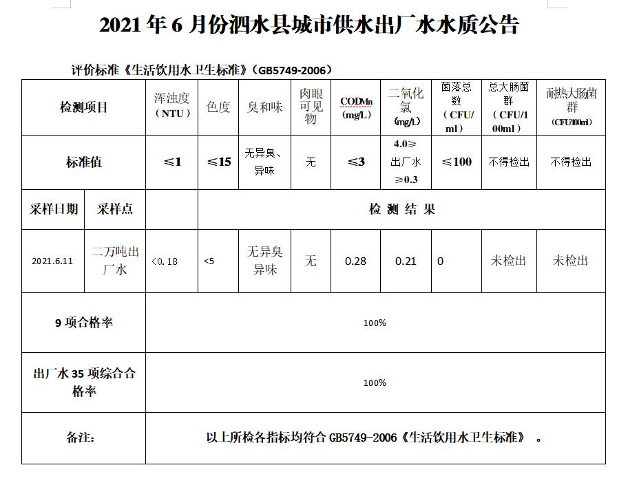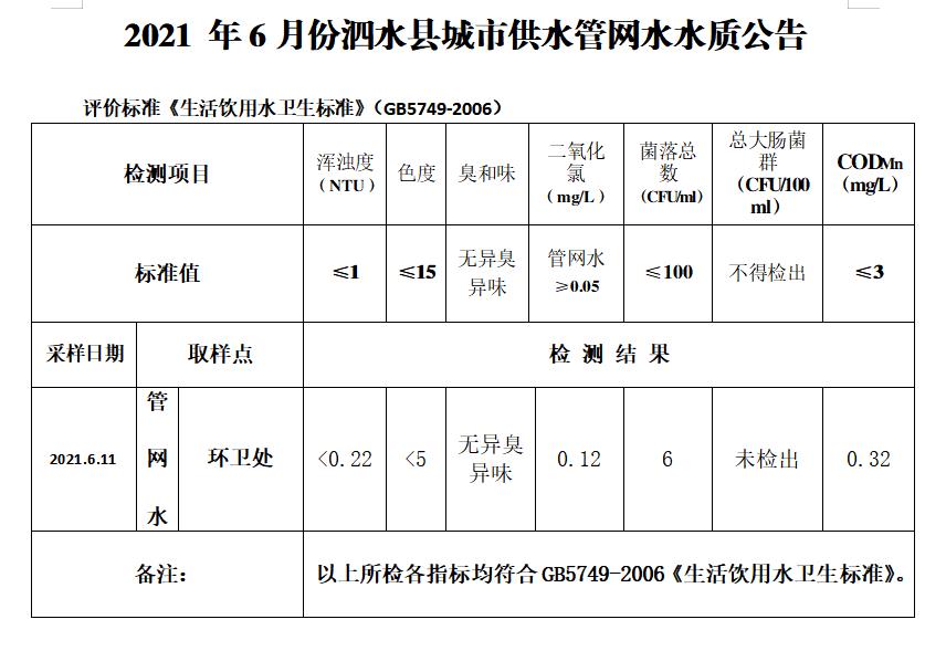 2021年6月份水质检测报告