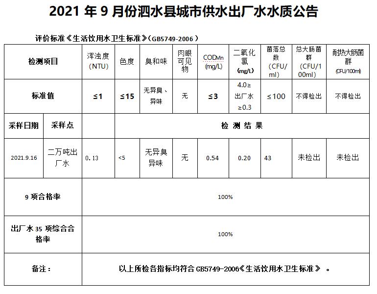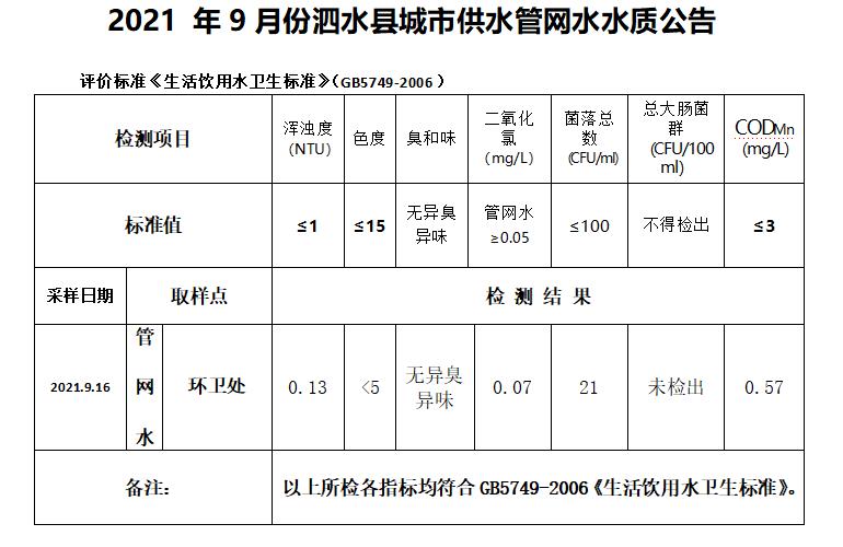 2021年9月份水质检测报告