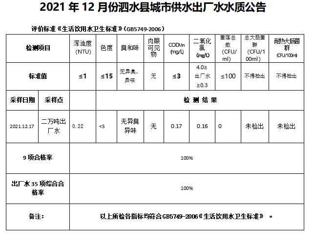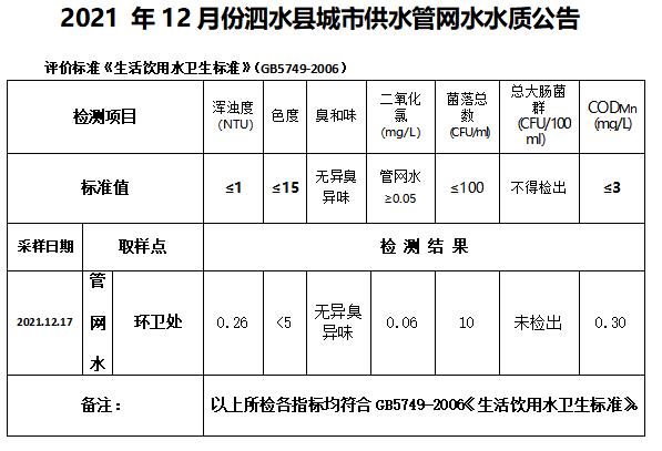 2021年12月份水质检测报告