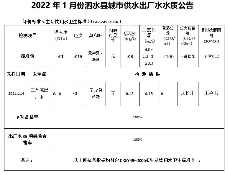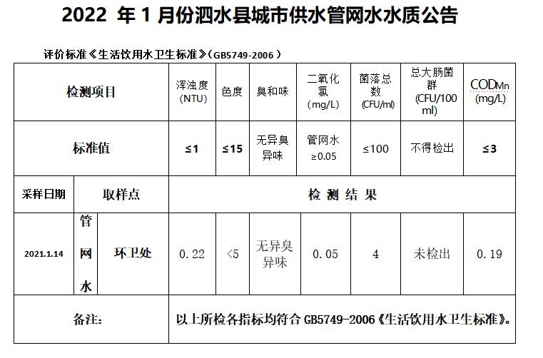 2022年1月份水质检测报告