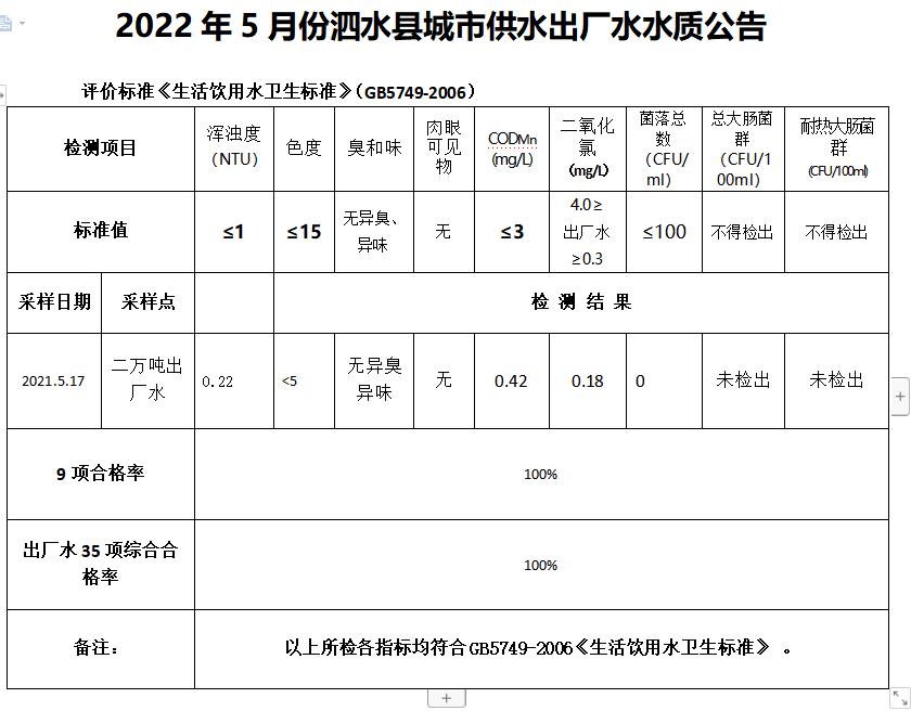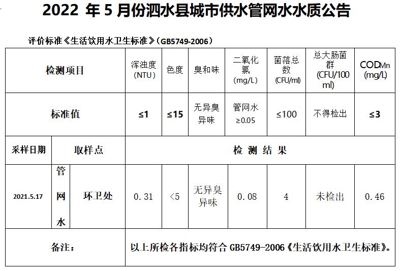 2022年5月份水质检测报告