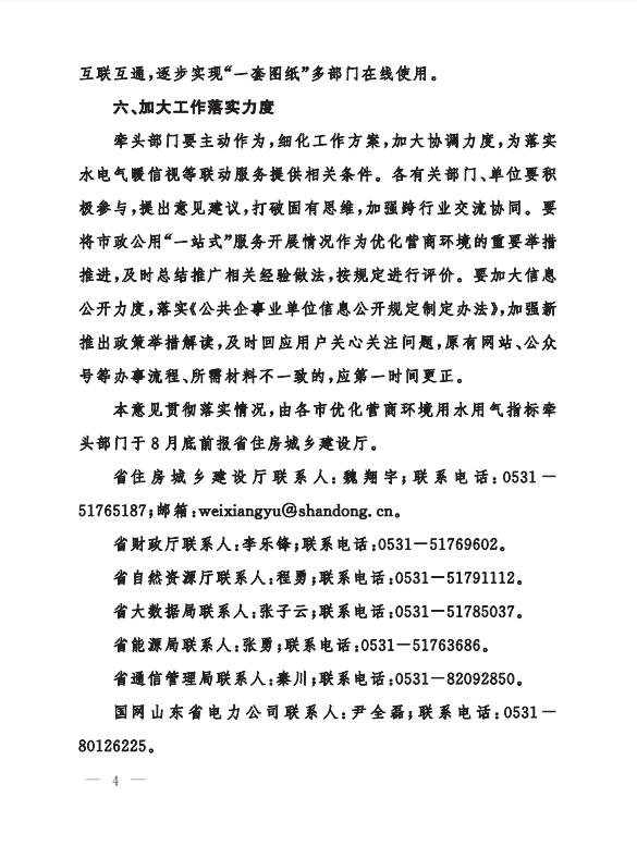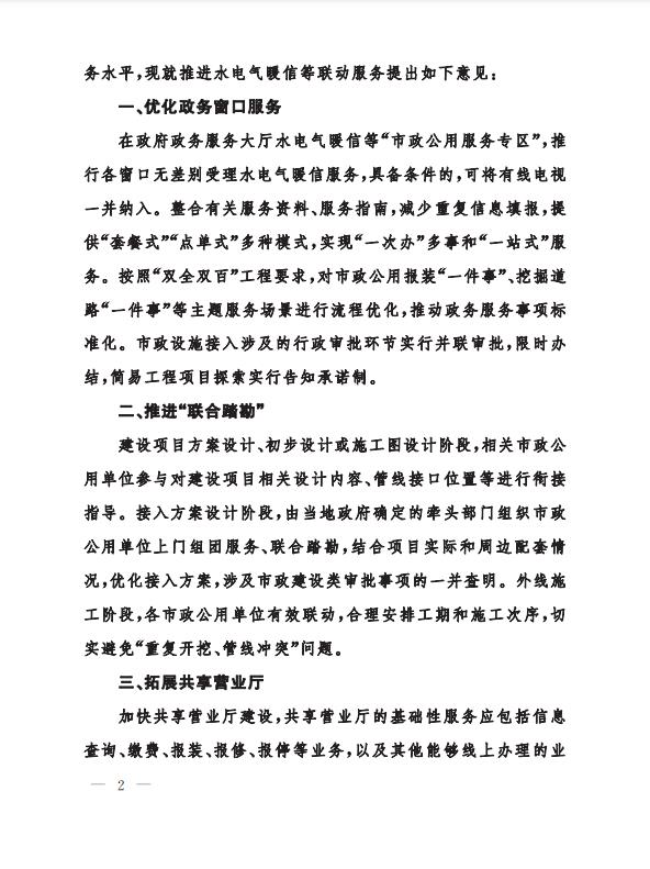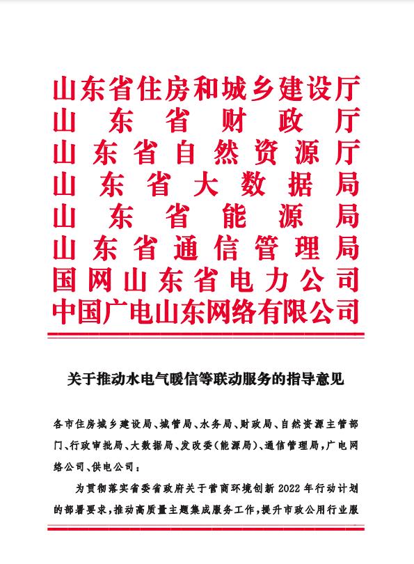 山东省住房和城乡建设厅《关于推动水电气暖信等联动服务的指导意见》