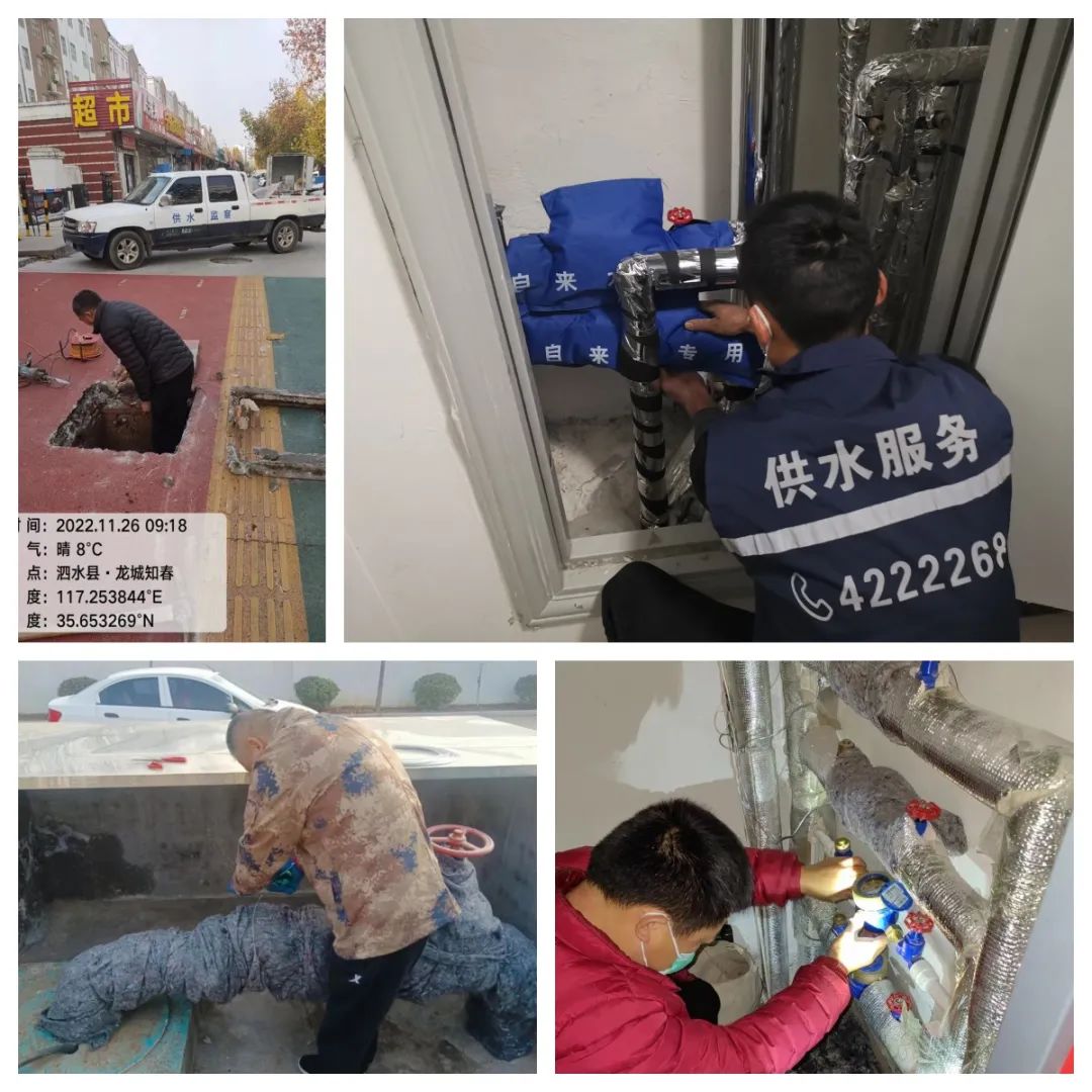 公司温馨提醒:如果家中长时间无人居住,最好关闭供水阀门、清空管路,防止低温损坏供水管线;对暴露在室外的供水管道、水龙头等设施,尽量用棉麻织物、塑料泡沫等保温材料包裹,减少因极端低温天气造成用水不便情况的发生。