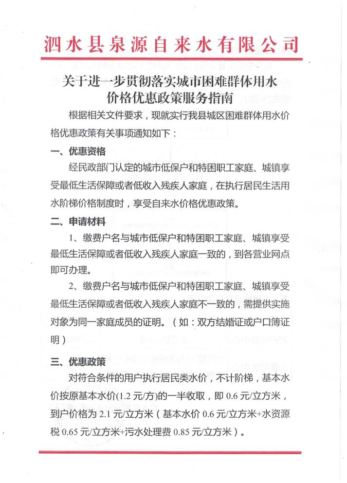 营商环境优惠政策《城市困难群体用水价格优惠政策服务指南》
