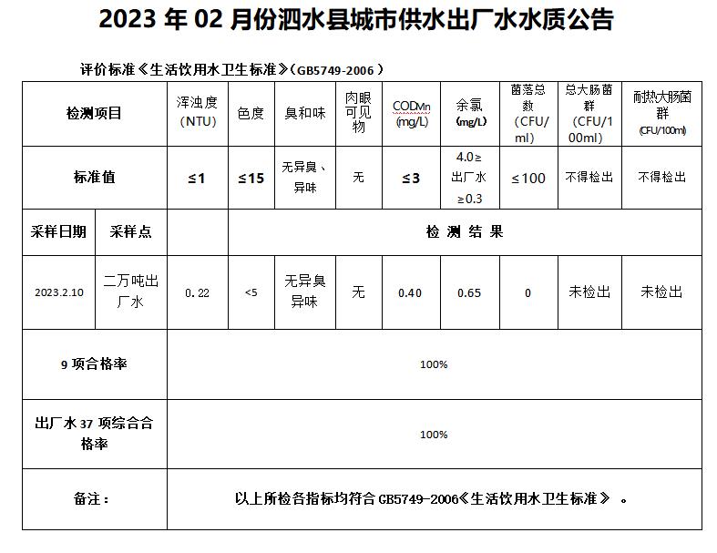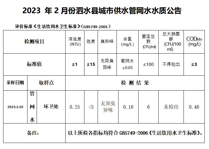 2023年2月份水质检测报告