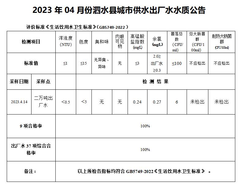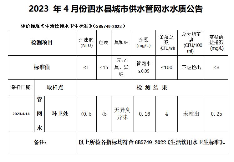 2023年4月份水质检测报告
