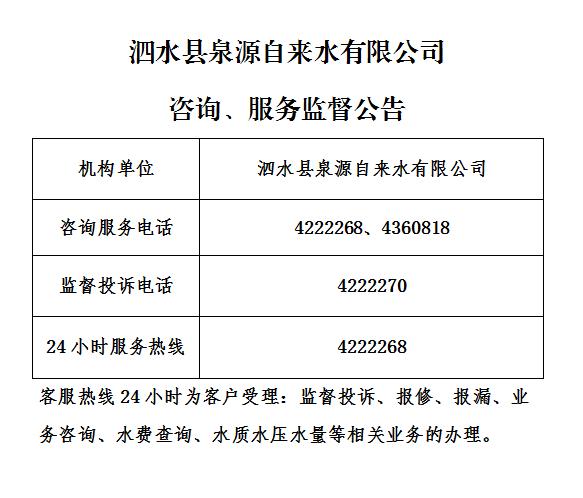 泗水县自来水公司服务承诺