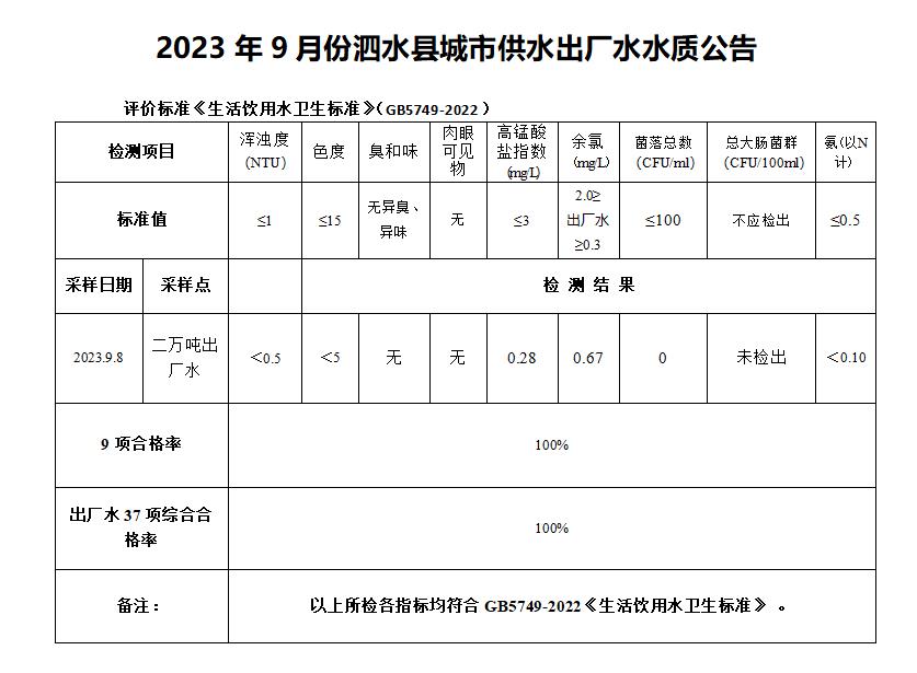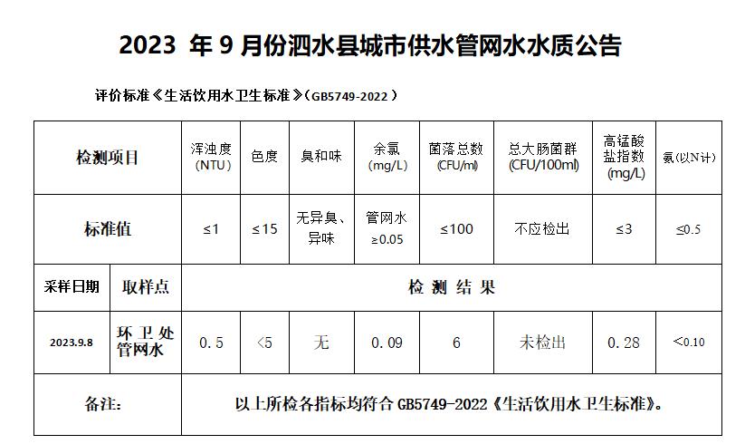 2023年9月份水质检测报告