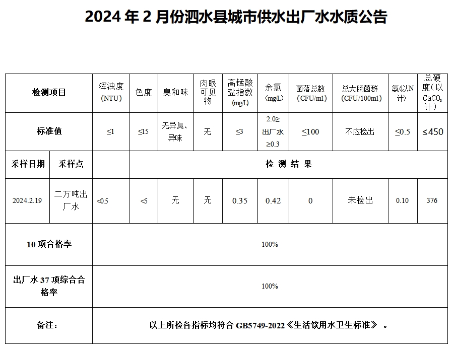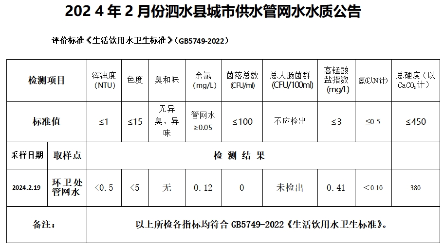 2024年2月份水质检测报告