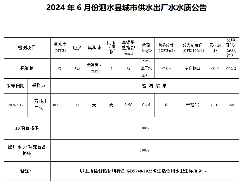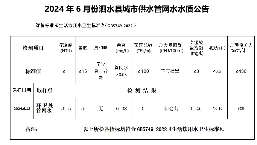 2024年6月份水质检测报告