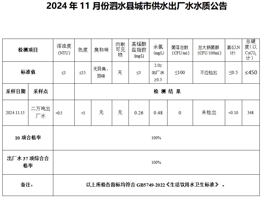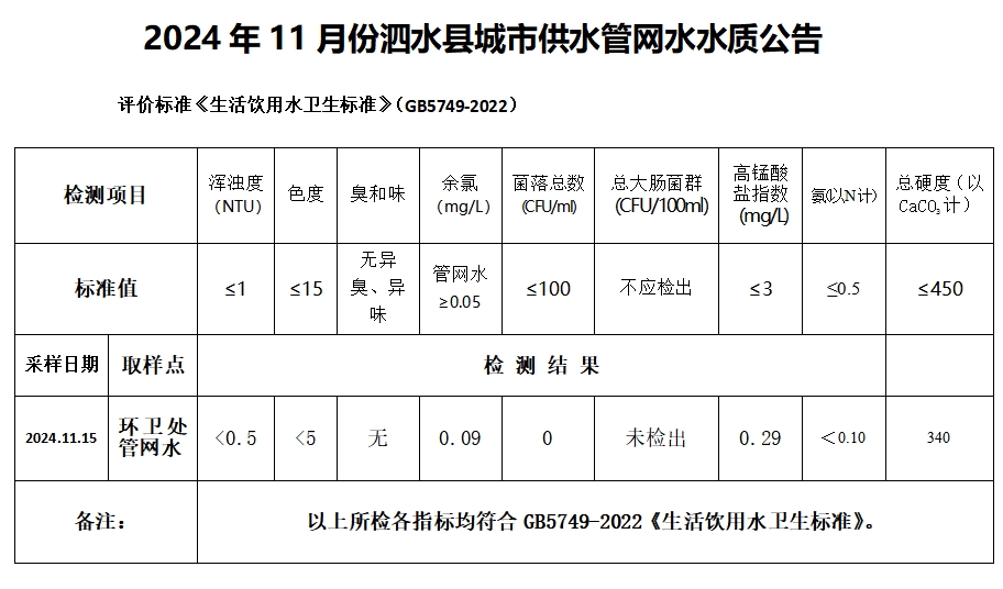 2024年11月份水质检测报告